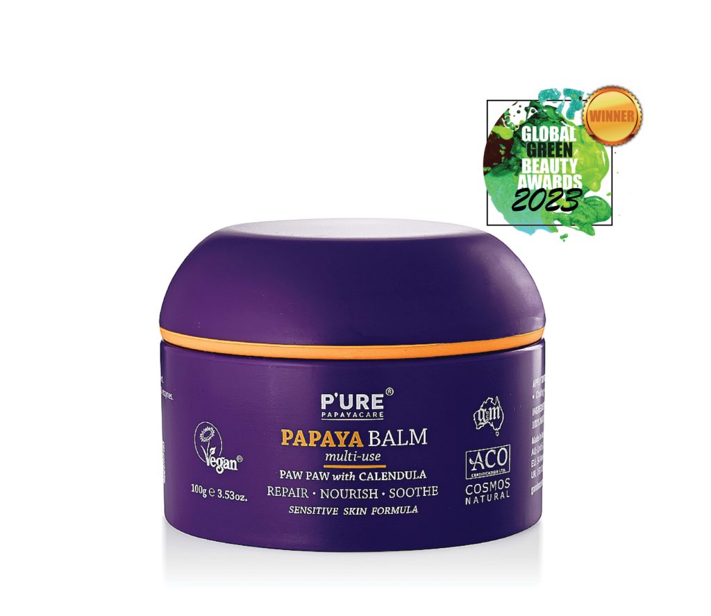 P’URE Papayacare Papaya Balm features an ultra rich nourishing & calming blend of Papaya, Shea Butter & Calendula. Papaya Balm works to repair, nourish & soothe dry, cracked & irritated skin.